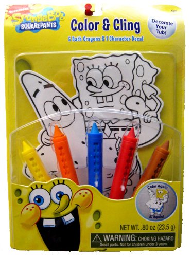 --> Details : Spongebob 5 Bath Crayons and Character Decal Coloring Set. Color and Cling.